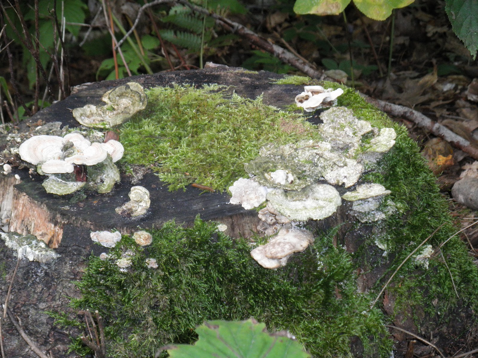 Sulfur Shelf - This fungus has a symbiotic relationship with stumps. It makes it appear to passing hikers that the stump is on fire so they don't sit on it.